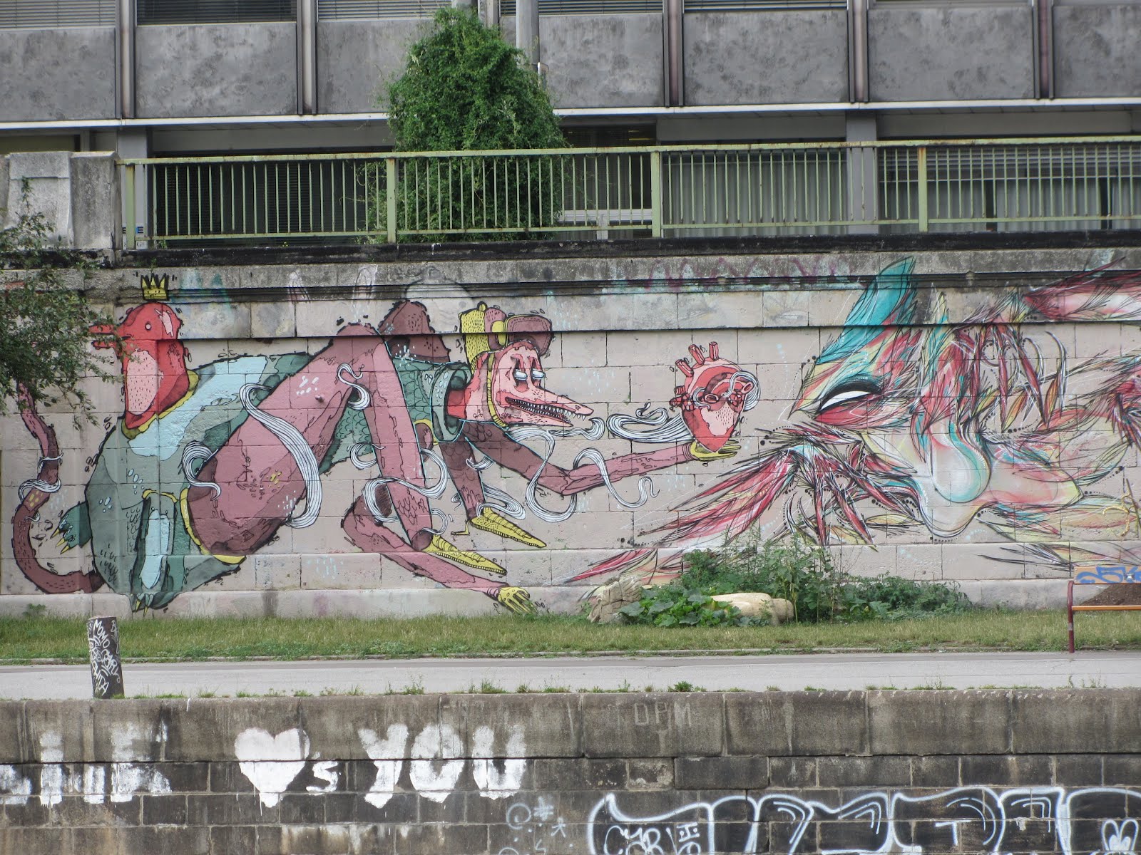 Knarf (Knarf Lumpenpack) was pretty unquestionably my favourite artist of the day. A lot of his pieces seem to be collaborations, but it's a very unique style and the flow of the freehand stuff is amazing. Much of the art seems to be abstract hearts and other organ-looking things, but it's the design and style more then the content that impresses me so much.